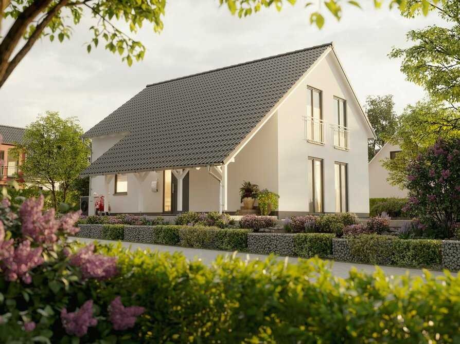 Das großzügige Haus mit dem schönen Satteldach überzeugt mit viel Platz und einem variablen Grundriss. Das Wohnzimmer schenkt genügend Raum zur Erholung, die sich anfügende Essecke wird schnell zum gemütlichen Familienmittelpunkt mit direktem Zugang zur Küche. Die hohen Fenster fangen das Tageslicht besonders gut ein. Jeder Raum im Haus wirkt offen und freundlich. Ein Arbeits- oder Kinderzimmer und das Gäste-WC runden das Erdgeschoss perfekt ab.
