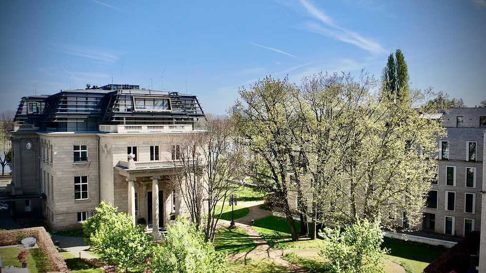 Lichtdurchflutete Räume, ein stilvoller Wohn- und Essbereich mit freistehendem Kamin und eine offene Designerküche schaffen ein Ambiente, das höchsten Ansprüchen gerecht wird. Herzstück ist die großzügige, ca. 118 m² große Dachterrasse mit Blick ins private Parkensemble und auf die historische Villa – ein Rückzugsort mit unvergleichlichem Flair.
