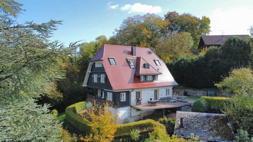 Die private Zufahrt, die uneinsichtige Lage und der alte Baumbestand verleihen dem Anwesen unvergleichliche Exklusivität.
