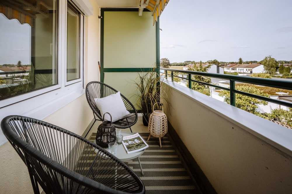 Endlich im stylischem Eigenheim entpannen und nicht mehr im alten Muff wohnen. Von der hellen Küche geht es in das lichtdurchflutete Wohnzimmer. Von hier gibt einen direkten Zugang zum überdachten 12 qm Balkon. Genießen Sie Ihren Feierabend bei Sonnenschein die Ruhe und erholen sich bei einer unverbaubaren weiten Aussicht. Das Schlafzimmer ist ebenso lichtdurchflutet mit einem direkten Zugang zum Balkon. Durch die Rolläden kann es bei Bedarf verdunkelt werden, um in absoluter Ruhe erholsam zu schlafen.