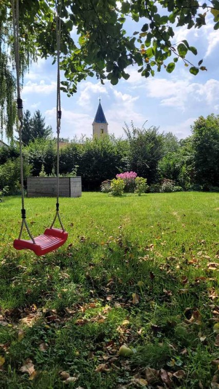 Kinder können hier unbeschwert unter Apfelbäumen spielen, während die Eltern die Ruhe und die Sicherheit genießen.