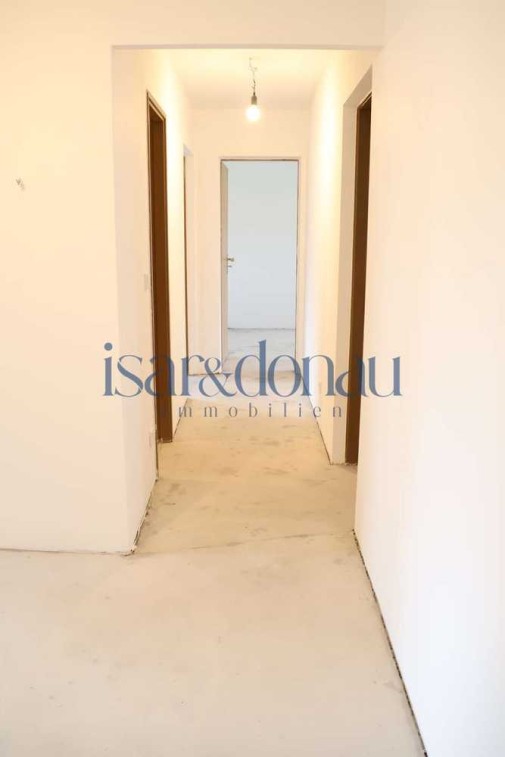 Die zuvor vorhandene Einbauküche wurde bereits entfernt und bietet nun Platz für eine neue Küchengestaltung nach individuellem Geschmack.
