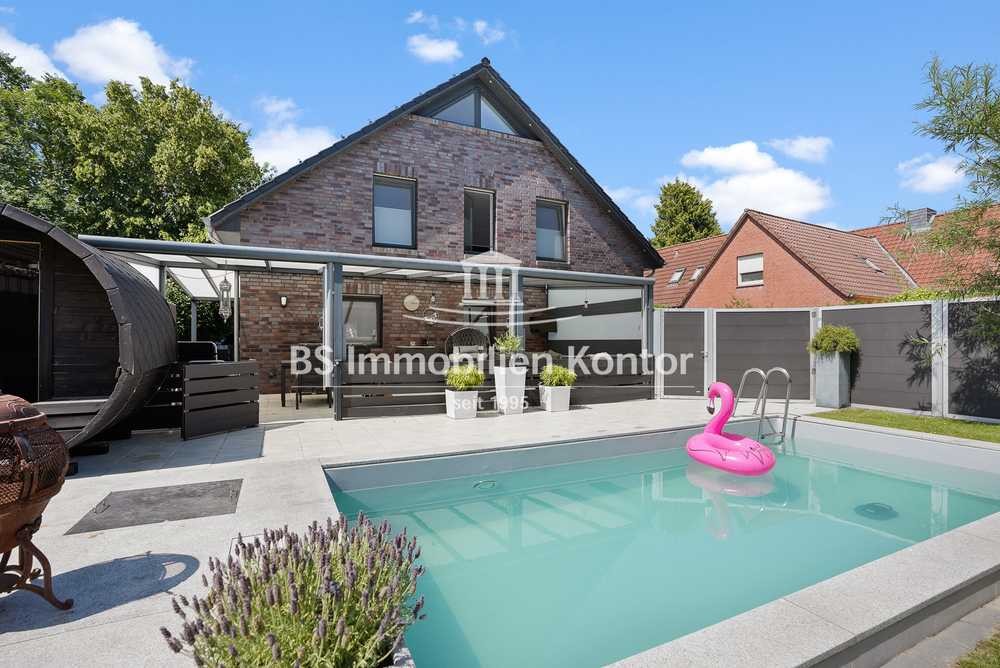 Sie suchen ein Wohnhighlight in Hinte? Hier werden Sie fündig! Dieses Immobilienangebot präsentiert sich in zentraler Lage von Hinte und lässt keine Wünsche offen. Lassen Sie sich von den zahlreichen Highlights dieser Immobilie faszinieren und erleben Sie Wohnkomfort auf hohem Niveau. Das neuwertige Einfamilienhaus wurde 2018 in konventioneller Massivbauweise mit einem Satteldach errichtet. Das Haus besticht durch eine zeitlose Architektur und einem modernen Zustand. Gelegen in einer ruhigen Sackgassenendlage, empfängt Sie das Haus mit einer privaten Zuwegung inkl. Toranlage. Beim Betreten des Eingangsbereiches fällt sofort die Wertigkeit und die gehobene Ausstattung auf. Die Designer-Einbauküche mit Markengeräten lädt Sie zu ausgedehnten Kochabende ein. Die Kunststofffenster sind dreifachverglast und mit Jalousien sowie Plissees u. Fliegengittern ausgestattet. Beheizt wird das Objekt durch eine Gas-Z.-Heizung. In der Gartenanlage erwartet Sie ein traumhaftes Wellnessangebot mit Swimming-Pool und Sauna. Genießen Sie den Sonnenuntergang auf der großzügig angelegten Terrasse. Eine Immobilie für Menschen, die Wohnqualität mit Lebensqualität verbinden und dieses besondere Immobilienangebot zu schätzen wissen. Hier können Sie Ihren Wohnraum wahr werden lassen und die Vorzüge einer gehobenen Lebensqualität in vollen Zügen genießen.