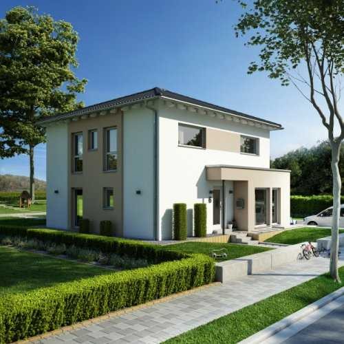 Diese beeindruckende Stadtvilla von LivingHaus wird nach deinen persönlichen Wünschen und Vorstellungen gefertigt. Mit zwei Etagen, drei Schlafzimmern und zwei Badezimmern bietet sie genügend Platz für die ganze Familie. Der moderne Walmdachstil kombiniert mit einem Übereck-Panorama-Erker sorgt nicht nur für eine ästhetische Erscheinung, sondern schafft auch zusätzlichen Wohnraum. Hier kannst du ein fast 15 Quadratmeter großes Home-Office genießen, das dir die Freiheit gibt, Arbeit und Privatleben harmonisch zu verbinden.