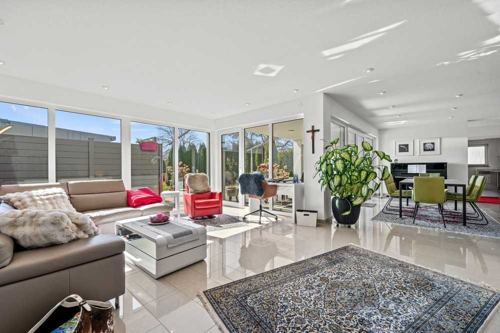 Die Ausstattung des Hauses lässt keine Wünsche offen: Fußbodenheizung, dreifach verglaste Fenster mit integrierten Fliegengittern, elektrische Lamellenrollläden, ein durchdachtes Lichtkonzept, eine Entkalkungsanlage sowie eine leistungsstarke Photovoltaikanlage mit 16,2 kW Leistung sorgen für höchsten Wohnkomfort und nachhaltige Energieeffizienz. Der liebevoll angelegte Garten ist ein Ort der Ruhe und Erholung – ideal zum Entspannen, Spielen oder Genießen.