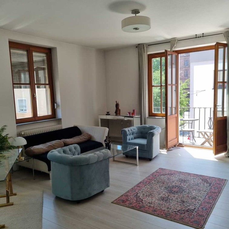 Die äußerst großzügige Etage im I. Obergeschoss wurde 2016 modernisiert und präsentiert sich als imposante Stadtwohnung mit kleinem, aber feinem Balkon.
