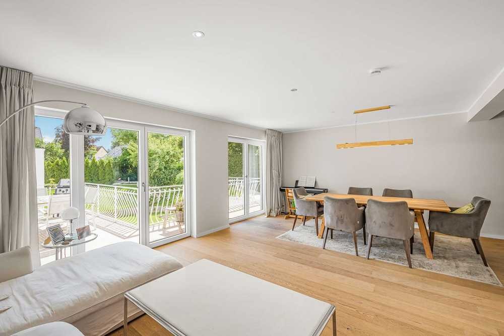 Diese stilvolle Doppelhaushälfte in einer der begehrtesten Straßen Grünwalds vereint klassische Architektur mit moderner Ausstattung. Das Haus wurde 2020 umfassend modernisiert und überzeugt durch lichtdurchflutete Räume, hochwertige Materialien, ein durchdachtes Raumkonzept sowie eine perfekte Süd-West-Ausrichtung für ganztägige Sonne.