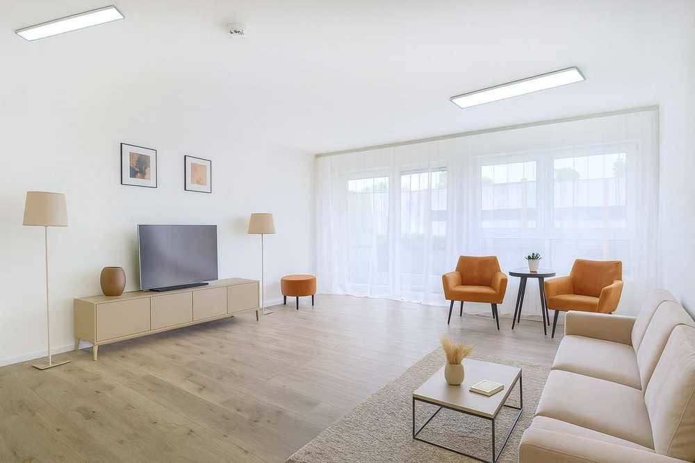 Die große Fensterfront sorgt für viel Tageslicht, und der Balkon macht das Wohnen besonders attraktiv – ein Ort zum Entspannen und Wohlfühlen.