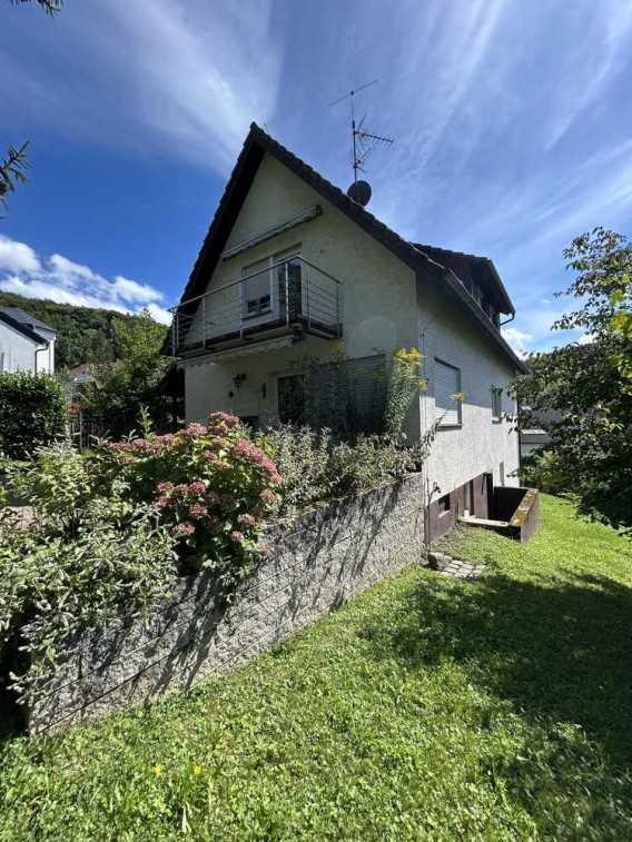 Neben dem Haus steht eine geräumige Garage mit direktem Zugang ins Untergeschoss, so gelangen Sie auch bei Regen trockenen Fußes ins Haus. Vor dem Gebäude befindet sich ein weiterer Stellplatz. Der Haupteingang ist über eine Außentreppe erreichbar.