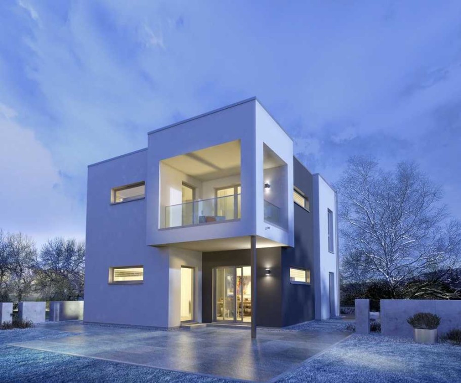 Ein echtes Highlight ist das Black Label 12: Schon von weitem sticht der würfelförmige, überdachte Balkon ins Auge, der der Fassade eine individuelle und fast futuristische Note verleiht. Nur ein schmaler Eisenträger stützt das im Obergeschoss platzierte Element, das sich harmonisch in das moderne Design einfügt. Doch der Würfel ist nicht nur optisch ein architektonisches Meisterwerk: Durch seine Lage in der oberen Etage entsteht darunter eine geschützte Terrasse. Die Highlights setzen sich im großzügigen Innenbereich von knapp 145 m² fort. Die Diele öffnet sich direkt zum offenen Wohn-Ess-Kochbereich, was ein einzigartiges Gefühl von Weite vermittelt. Im Erdgeschoss befinden sich zudem ein geräumiger Hauswirtschaftsraum, ein Abstellraum und ein Gäste-WC. In der oberen Etage finden sich neben dem Schlafbereich der Eltern zwei große Kinderzimmer. Von zwei der drei Zimmer aus gelangt man auf den Balkon. Black Label 12 - ein Zuhause für alle, die das Außergewöhnliche schätzen.