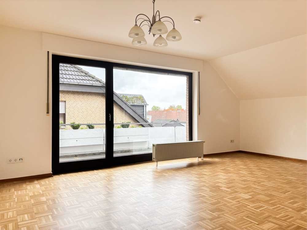 Der schöne Echtholzparkettboden verleiht den Wohnräumen eine warme und hochwertige Atmosphäre. Dank der guten Grundrissplanung geht durch die Dachschrägen kaum Wohnfläche verloren – die Räume wirken hell, freundlich und gut nutzbar.