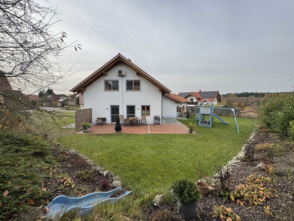 Das ansprechende Einfamilienhaus wurde 2019 in solider Bauweise auf einem wunderschönen großzügigem Baugrundstück erstellt. Die Räume wirken ansprechend und gemütlich, sie sind lichtdurchflutet und mit hochwertigen, zeitlosen Materialien ausgestattet. Die Küche ist ein großzügiger Raum mit viel Platz für den Essbereich.Das Wohnzimmer mit Kaminofen wirkt einladend. Ohne großen Aufwand kann es zur Küche hin geöffnet werden. Vom Wohnraum und der Küche aus betritt man eine große Terrasse mit Blick in den herrlichen, naturnahen Garten, der an Feld und Wiese grenzt. Im Erdgeschoss befinden sich zudem ein kleines Büro, ein Hauswirtschaftsraum und eine Speis sowie ein Gäste-WC , hier ist bereits eine Dusche vorbereitet, sie lässt sich ohne großen Aufwand installieren.