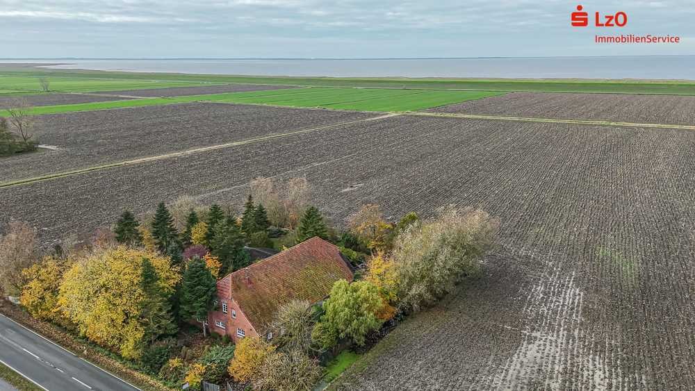 Der solide Resthof wurde auf einem 3.003 m² großen Grundstück erbaut und ist umgeben von weitläufigen Weideflächen Richtung Meeresdeich. Trotz dieser tollen Idylle sind Einkaufsmöglichkeiten in 5 Minuten erreichbar.