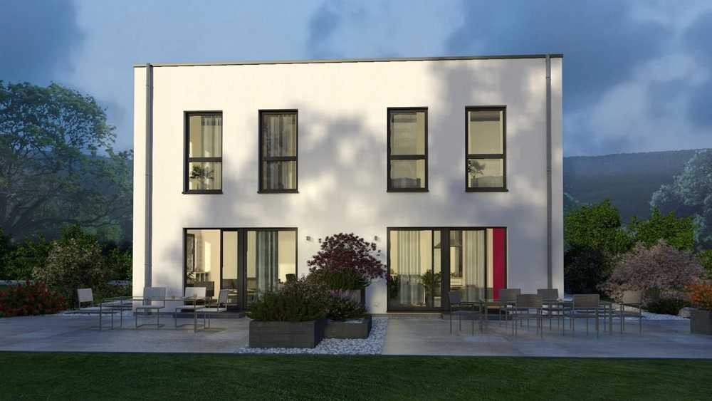 Die kubistische Stadtvilla mit Flachdach beeindruckt mit klaren Linien und schlichten Akzenten. Purismus vom Feinsten. Das kompakte Raumwunder ermöglicht Wohnen auf zwei Ebenen, mit identischen, aber gespiegelten Grundrissen. Ansonsten herrscht harmonische Einheit. Die geraden Treppen führen stilgetreu in die obere Etage. Neben dem Elternschlafzimmer können hier zwei weitere Räume als Kinderzimmer oder für Hobby und Home-Office genutzt werden. Großflächige Fenster- und Türelemente schenken den Räumen Leichtigkeit und Lichtfülle. Das Flachdach ermöglicht volle Raumhöhe auch in der oberen Etage und bleibt dem Bauhausstil treu.