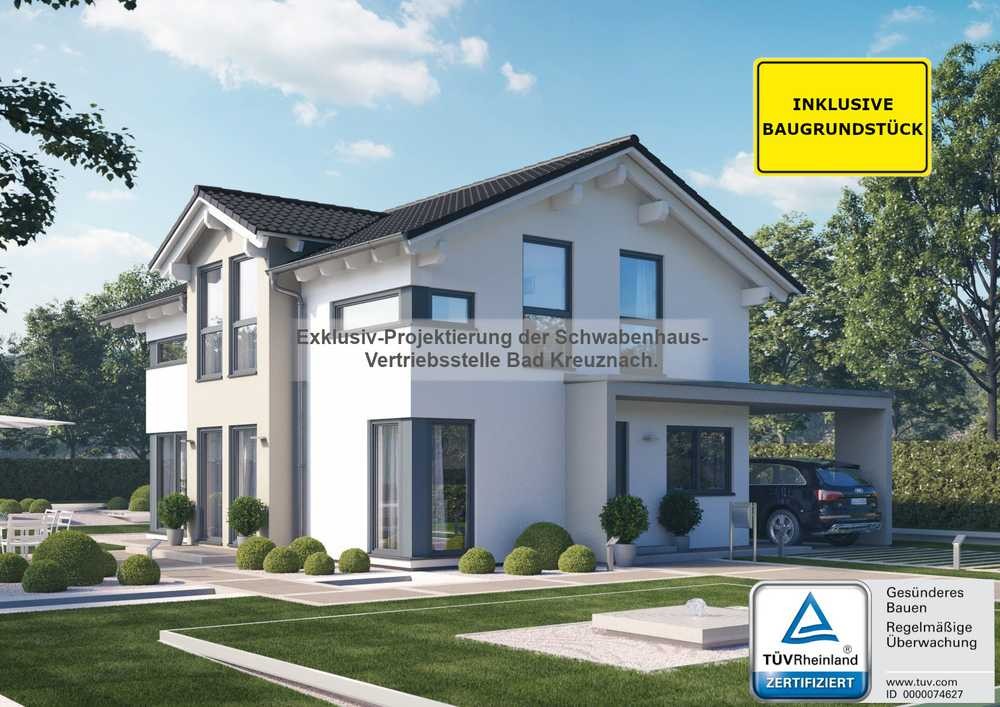 Hier können Sie als Bauherr die Hausbau-Firma SCHWABENHAUS mit der Errichtung eines energieeffizienten Hauses mit Festpreisgarantie und zeitnaher Fertigstellung beauftragen und Ihre Bauwünsche INDIVIDUELL auf einem wunderschönen Baugrundstück verwirklichen, welches Sie vorher direkt „von privat“ erwerben würden. -- Die hier dargestellten Pläne / Grundrisse stellen eine mögliche Bebauung des Grundstücks dar.