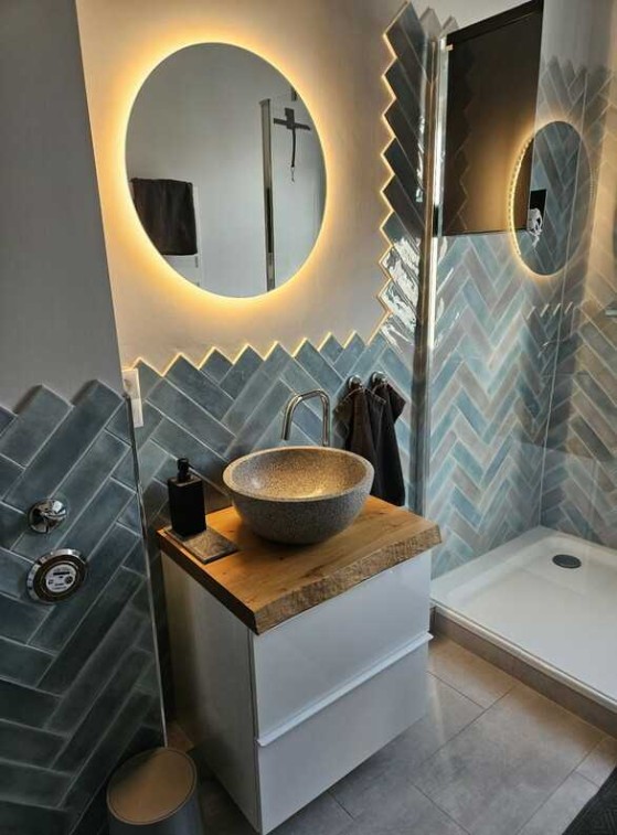 -Badezimmer mit Walk-in-Dusche