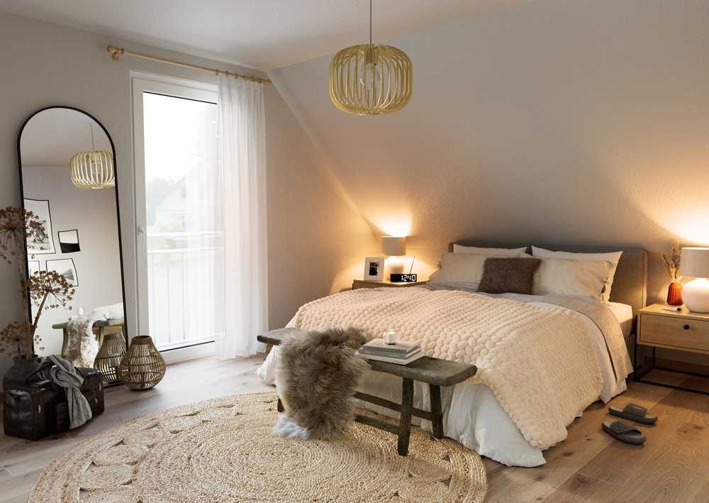 Im Erdgeschoss knüpft die offene Küche direkt an das Wohn-/Esszimmer an, während auf der Straßenseite ein Hauswirtschaftsraum und Gäste-WC Platz finden. Das Obergeschoss begrüßt dich mit einer Galerie für deine Hobbys oder deinen flexiblen Arbeitsbereich. Ein Bad, Kinder- und Schlafzimmer runden das Dachgeschoss ab.