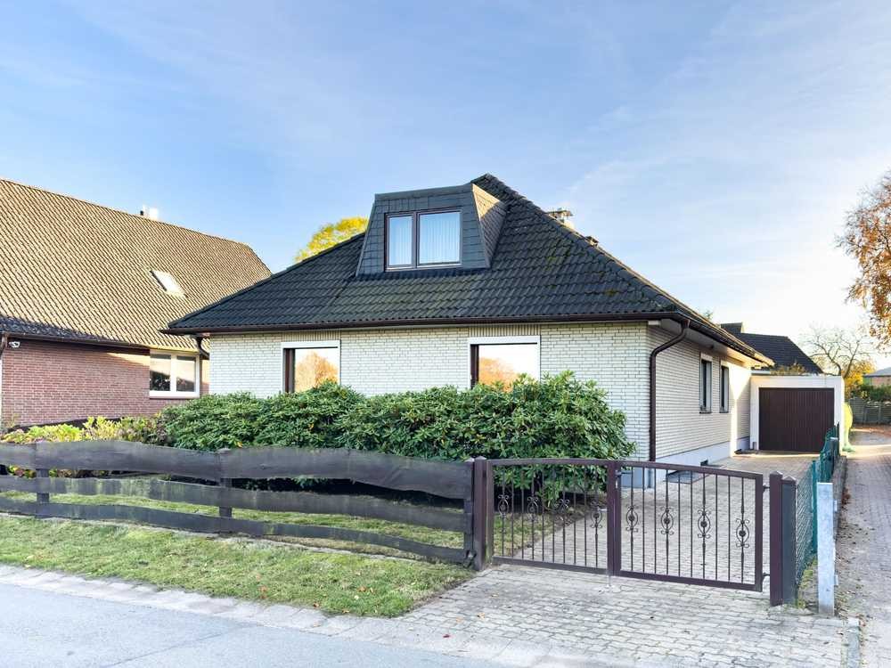 Ihr neues Zuhause in Bönningstedt: In begehrter Randlage präsentiert sich dieser äußerst gepflegte Walmdachbungalow mit einem einladenden und zugleich funktionalen Grundriss. Beim Betreten des Hauses empfängt Sie linkerhand die Küche mit Essplatz – ein idealer Ort für den Start in den Tag. Vom Flur aus öffnet sich der Blick auf die Flügeltür mit Bleiverglasung, die in das großzügige Wohn-Esszimmer führt. Helles Stäbchenparkett und ein Kachelofen verleihen dem Raum eine besonders behagliche Atmosphäre. Der sonnige Garten mit Terrasse wird schnell zum Mittelpunkt des Familienlebens: ein Platz zum Gärtnern, Entspannen oder für Grillabende mit Freunden. Das Erdgeschoss umfasst weitere drei gut geschnittene Zimmer, ein Vollbad sowie ein Duschbad mit charakteristischem Schmuckfenster. Über die geschwungene, offene Treppe erreichen Sie das wohnlich ausgebaute Dachgeschoss (ca. 30 m² Nutzfläche). Dieser Bereich eignet sich als Rückzugsort, Raum für Hobbies oder zusätzliches Schlafzimmer – perfekt auch für größere Kinder oder Gäste. Der Blick von hier oben in die Natur verleiht dem Raum eine besondere Qualität. Der Keller bietet einen für das Baujahr typischen Partyraum mit Bar, eine Sauna mit angrenzendem Duschbad, zwei weitere Räume, einen Vorratskeller und den Heizungsraum. Eine neue Gasheizung wurde 2022 installiert. Zwei Garagen runden das Angebot ab. Insgesamt befindet sich die Immobilie in einem sehr gepflegten Zustand. Bönningstedt vor den Toren Hamburgs steht für eine attraktive Mischung aus naturnahem Wohnen und hervorragender Anbindung – ideal für Familien und alle, die Stadtnähe und den Blick ins Grüne gleichermaßen schätzen. Vereinbaren Sie gern Ihren persönlichen Besichtigungstermin und entdecken Sie die Vorzüge dieses besonderen Zuhauses.