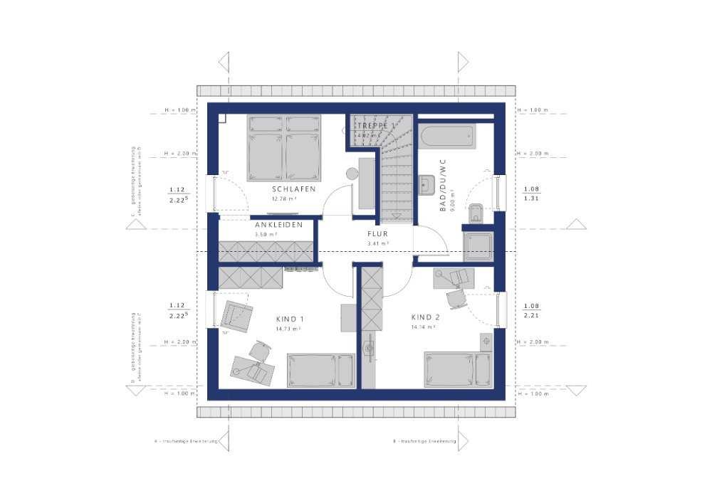 Das EVOLUTION 124 von Bien-Zenker ist ein wahres Meisterwerk individueller Architektur und bietet Ihnen die Möglichkeit, Ihr Zuhause ganz nach Ihren Wünschen zu gestalten. Ob Sie sich für das moderne Satteldach mit einer Dachneigung von 25° oder 38° entscheiden oder doch lieber ein Walmdach oder Flachdach bevorzugen - die Vielfalt der Gestaltungsmöglichkeiten kennt kaum Grenzen. Die großzügigen Fensterflächen fluten die Räume mit Tageslicht und schaffen eine lichtdurchflutete Wohnatmosphäre, die zum Verweilen einlädt. Mit einer Wohnfläche von 125 m² auf einem großzügigen Grundstück von 627 m² können Sie Ihrer Kreativität freien Lauf lassen und Ihr persönliches Wohnparadies kreieren.