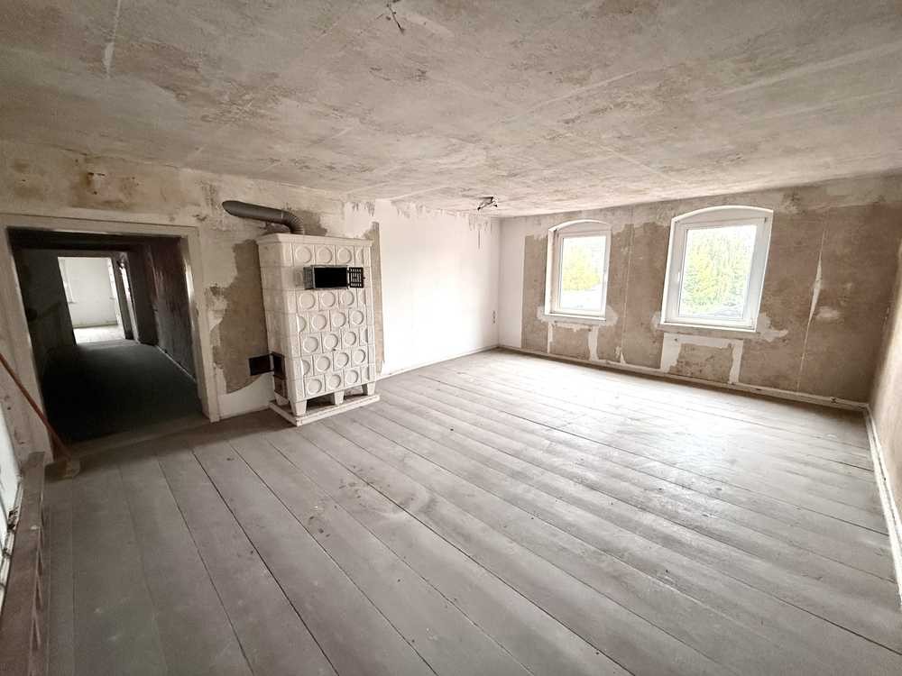 Es umfasst zwei Wohneinheiten, ca. 231 m² Gewerbefläche sowie zusätzliche Nutzfläche im Keller, Dachboden und in einer großen Scheune mit eigenem Keller. Zwar besteht Sanierungsbedarf – vor allem durch Dachschäden –, doch der Dachstuhl ist laut Fachbegutachtung intakt.