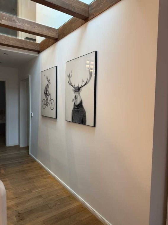 Diese Doppelhaushälfte wurde ab 2017 umfassend saniert und um einen modernen Anbau ergänzt. Das ursprüngliche Baujahr 1947 trifft hier auf hochwertige Materialien, klare Grundrisse und eine zeitgemäße technische Ausstattung.