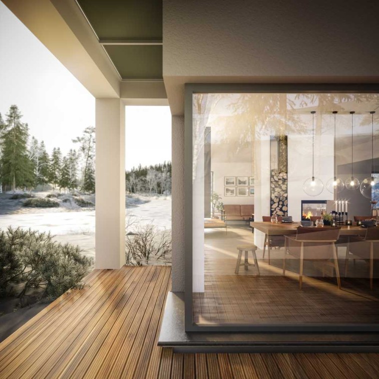 Ein repräsentatives Äußeres, ein gehobenes Ambiente im Innern und viel Platz zur persönlichen Entfaltung: Dieses Fertighaus bietet alles, was man von einer modernen Stadtvilla erwarten kann. Und sogar noch vieles mehr! Denn die zukünftigen Bewohner können ihr neues Zuhause perfekt auf ihre individuellen Wünsche und Bedürfnisse anpassen - etwa mit verschiedenen Architektur-Bauteilen. Dieser Entwurf wird beispielsweise durch ein schickes Querhaus erweitert, das sich mit seinem Walmdach harmonisch in das Gesamtbild einfügt. Hinzu kommt ein großer, sonnenverwöhnter Balkon, der von filigranen Stützen getragen wird. Besonders raffiniert ist die Wandscheibe, die die darunterliegende Terrasse vor fremden Blicken schützt und so für ein gemütliches Flair sorgt. Hier lässt man sich an warmen Sommertagen gerne nieder, genießt ein kühles Getränk und lässt den Blick über den Garten schweifen. Die Fassade der Stadtvilla hüllt sich in einen strahlend weißen Mineralputz. Wer möchte, kann sein Traumhaus auch mit frischen Farbakzenten aufpeppen. Im Innern zeigt sich eine offene Wohnwelt für vier oder sogar fünf Personen. Das Erdgeschoss wird über eine geräumige Diele erschlossen, in der sich auch mehrere Personen gleichzeitig aufhalten können, ohne dass es zu eng wird. Perfekt für Familien, die gerne Besuch empfangen. Haben alle Gäste die Jacken abgelegt und die Straßenschuhe gegen Hausschuhe getauscht, geht es direkt an den langen Küchentresen, wo schon das Begrüßungsgetränk bereitsteht. Erst von hier aus kann man das Wohnzimmer mit der gemütlichen Couchlandschaft einsehen, das sich über Eck an den kulinarischen Bereich anschließt. Die Privaträume liegen unter dem Dach: Jedem Bewohner steht hier ein großes Schlafzimmer zur Verfügung. Für den Nachwuchs gibt es ein besonderes Schmankerl obendrauf, denn die beiden Kinderzimmer verfügen jeweils über einen Zugang zum Balkon. Eine wohlverdiente Auszeit vom Alltag finden die Bewohner im Familienbad mit bodengleicher Wellnessdusche und Badewanne. Zusätzliche Platzreserven bieten die Empore und der flexibel nutzbare Raum im Erdgeschoss.