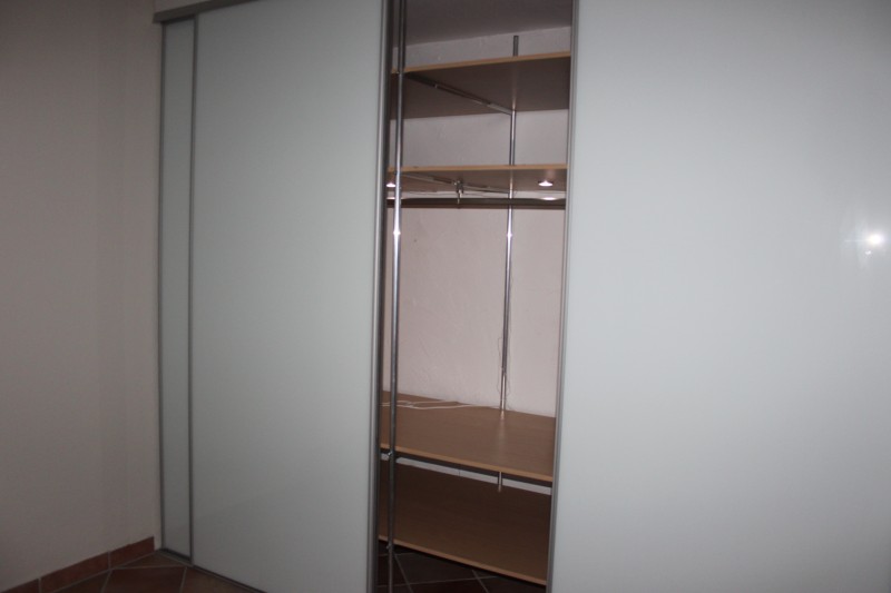 Zwei Einbauschränke mit Glasfront nutzen den vorhandenen Platz hervorragend aus.