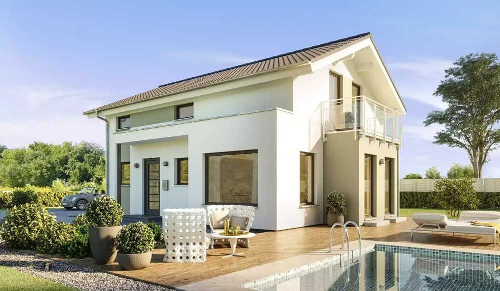 Die meisten Baufamilien haben bereits grobe Vorstellungen von ihrem zukünftigen Traumhaus, wenn sie zu ihrem Hausberater kommen. In Gedanken steht bereits die Dachform, die Fassadengestaltung und die Zimmeranzahl fest. Spannend wird es, wenn es dann an die detaillierte Planung geht, wenn die Fenster angeordnet, additive Architektur-Bauteile platziert und der Grundriss aufgeteilt wird. Schließlich soll das Haus nicht nur chic aussehen, sondern auch im Alltag gut funktionieren. Ein Entwurf, der sowohl von außen als auch von innen eine gute Figur macht, ist das EDITION 123. Mit seinem flach geneigten Satteldach und dem schmalen Baukörper fügt es sich harmonisch in jede Bebauungssituation ein. Erweitert wird das Fertighaus von einem großzügig verglasten Panorama-Erker, der sich in eine Eingangsüberdachung verlängert, sowie von einem Rechteck-Erker, auf dessen Dach ein sonniger Balkon Platz findet. Spannung erzeugen die hellgrau abgesetzten Fassadenflächen, die dem Gebäude zusammen mit den dunklen Fensterrahmen einen eleganten Touch verleihen. Betreten wird das Haus über einen Windfang, der als praktische Schmutzschleuse fungiert. Nasse Jacken und matschige Stiefel können hier bequem ausgezogen und zum Trocknen aufgehängt bzw. abgestellt werden. Direkt neben dem Eingang liegt ein geräumiges Büro, das konzentriertes Arbeiten fernab vom Familientrubel ermöglicht. Offen geht der Windfang in die Diele mit integriertem Treppenhaus über. Links schließen sich eine Gästetoilette und der Technikraum an, rechts führt der Weg zum Herz des Hauses: dem großzügigen Wohn-, Ess- und Kochbereich. Besonders schön sind die vielseitigen Stellmöglichkeiten: So findet der Esstisch beispielsweise im lichtdurchfluteten Erker Platz, während sich die Couch an die Wand schmiegt. Die u-förmige Küche bietet nicht nur eine große Arbeitsfläche, sondern auch viel Stauraum für Töpfe, Geschirr und Vorräte. Im Dachgeschoss stehen die Zeichen ganz auf Entspannung: Zwei annähernd gleich große Kinderzimmer, ein Elternschlafraum mit vorgelagertem Ankleidebereich und ein gemütliches Familienbad laden hier zum Träumen und Wohlfühlen ein.