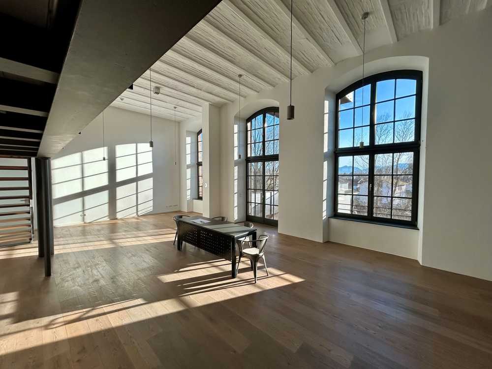 Zum Verkauf wird eine Loftwohnung angeboten. 4,60m hohe Decken und große Fenster sorgen dafür, dass ein Wohngefühl wie in einer Orangerie oder in einem Schloß entsteht. Die Wohnung ist in ihrer Form und Lage einzigartig und besonders, hochwertig ausgestattet mit PanoramaBlick in die Berge, ins Grüne und auf die Mangfall. Die Wohnung verfügt über mehrere sehr gut ausgestattete Badezimmer, eine Gästetoilette und bisher 2 Schlafzimmer. Mt geringem finanziellem Aufwand können durch die Erweiterung zusätzliche 2 Zimmer eingerichtet werden, die als Ankleide, Arbeits- oder Schlafzimmer verwendet werden können. Die Galerieerweiterung vergrößert den Wohnraumauf über 200qm, ohne dass sich Miteigentumsanteile oder Nebenkosten erhöhen. Die bereits vorhandenen Schlafzimmer befinden sich in nördlicher Ausrichtung zu den begrünten Innenbereichen gewendet. Die Wohnung befindet sich im 1.Obergeschoß und hat einen großzügigem Balkon mit Blick auf die Mangfall. Durch einen Fahrstuhl gelangen Sie aus der Tiefgarage bequem ins entsprechende Stockwerk. Auf dem zum Haus dazugehörigen Tiefgaragenstellplatz können Sie Ihr Auto parken. Eine Möglichkeit für elektrisches Laden ist ab dem Stellplatz bereits vorbereitet. Weiterhin stehen im Außenbereich großzügige Parkflächen für die Eigentümer und Besucher zur Verfügung.