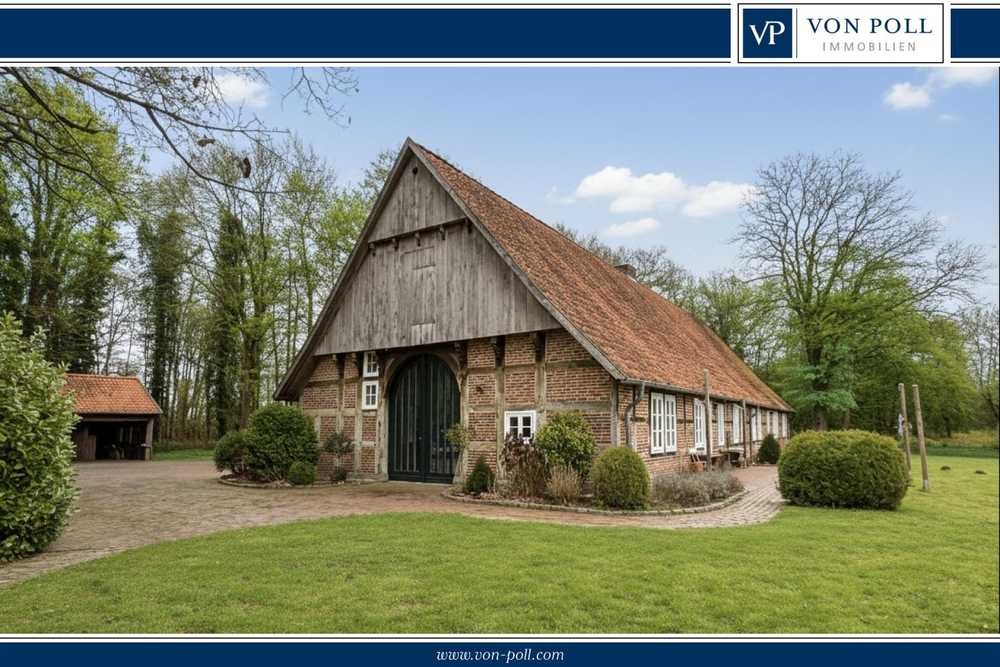 In idyllischer Alleinlage von Badbergen und unter Denkmalschutz stehend präsentiert sich dieses hochwertig sanierte Fachwerkanwesen als idealer Lebensmittelpunkt - sowohl für Familien als auch für Paare, die ein großzügiges Raumangebot schätzen.