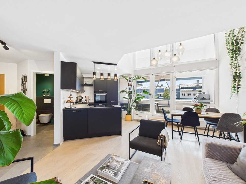 Der großzügige Wohn- und Essbereich mit offener, moderner Küche ist das Herzstück dieser Wohnung. Ausgestattet mit einem hochwertigen BORA-Kochsystem und anderen erstklassigen Elektrogeräten, lädt die Küche zum Kochen und Genießen ein.