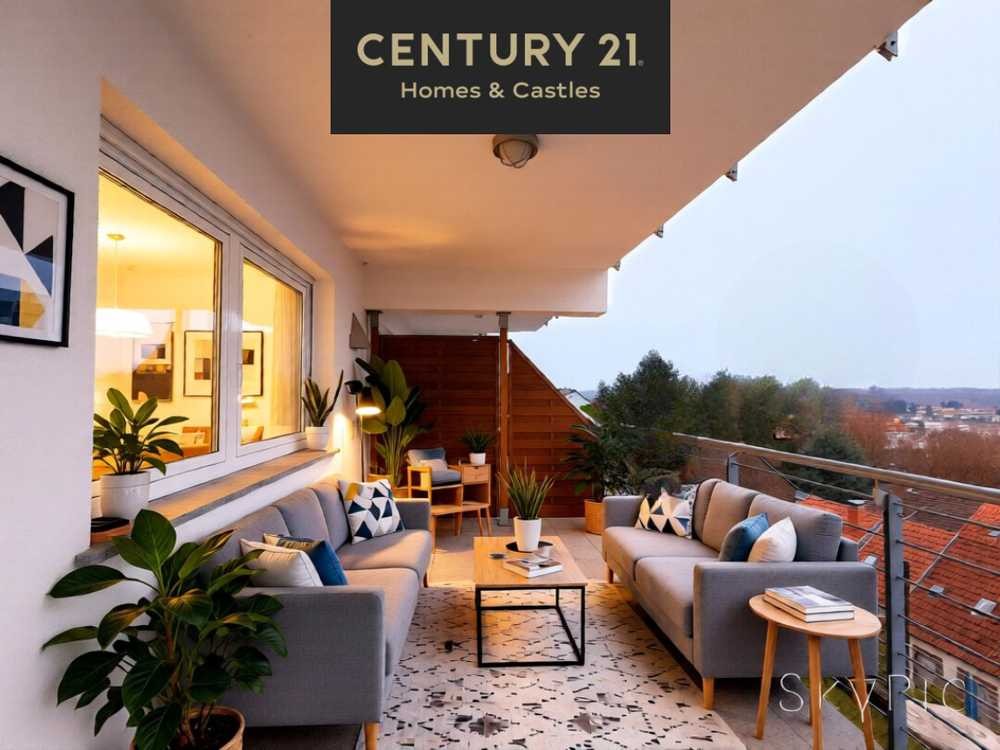 Das besondere Highlight dieser Wohnung ist der wunderschöne Wintergarten mit seinen bodenlangen Fenstern, der ebenso wie der Balkon den imposanten Fernblick bis nach Frankreich bietet. Für die behagliche und gemütliche Atmosphäre im Wohnbereich sorgt der moderne Holzkamin aus dem Jahr 2007.