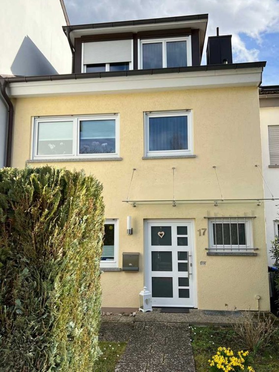 Das Familienhaus mit 250 m² Grundstück wurde 2007 komplett saniert. Alle Fenster mit 3-fach Verglasung; Das RHS liegt in einer Sackgasse, 1 min zum Schulzentrum, 5 min ins Zentrum; Erdgeschoss: Küche; Gäste-WC; Wohnzimmer mit Kachelofen, Überdachte Terrasse ca. 30 m²; Obergeschoss: 3 Zimmer, Bad mit Wanne und Dusche, Balkon; Dachgeschoss: Großes Zimmer mit separaten Bad, Pharo Dusche mit Dampfsauna; Keller: Hobbyraum kann auch 4 Kinderzimmer genutzt werden, Vorratsraum, Waschküche, Heizungsraum; zum Haus gehört eine separate Garage mit separatem Stellplatz, vor dem Haus sind weitere Stellplätze.