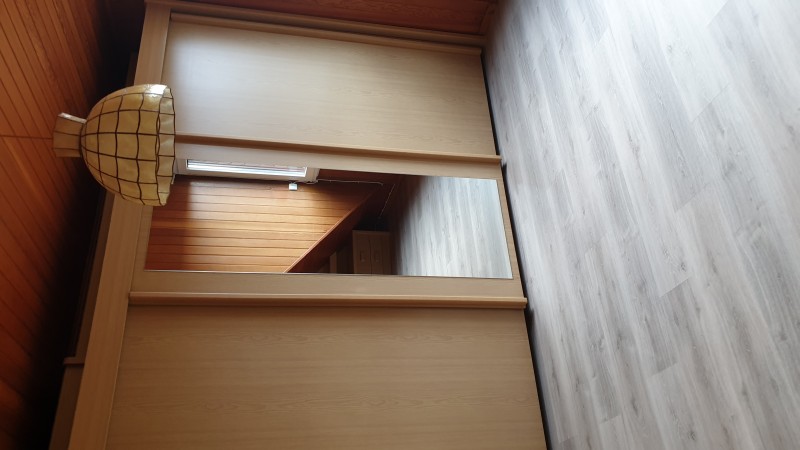 Schlafzimmer mit 2 großen Kleiderschränken. 1 gr. Spiegel. Wenn gewünscht 1 Doppelbett mit Lattenrosten und 2 Nachtschränkchen möglich. Vinylfußboden