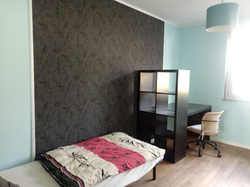 Schlafzimmer 2 mit 1-2 Einzelbetten (90cm breit), Schreibtisch, Regal und Kleiderständer.