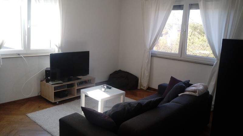 Im Wohnzimmer könnt Ihr es euch auf der Couch bequem machen und Musik hören, Fernsehen oder am Schreibtisch arbeiten.
