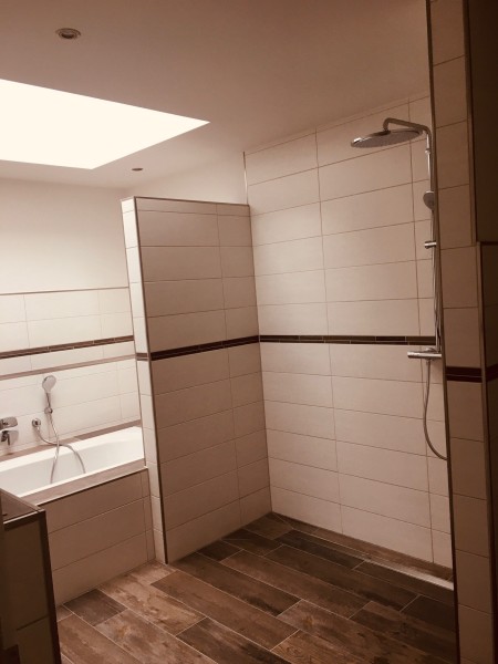 Eine super schöne Wohnung. Alles ist NEU | ein sehr grosses Badezimmer mit Dusche und Badewanne, Gäste WC, Fußbodenheizung, Elektrik, Türen, Fenster. Zu der Wohnung gehört auch ein Heizungsraum mit Anschluss für die Waschmaschine, der sich direkt neben der Wohnungseingangstür befindet.