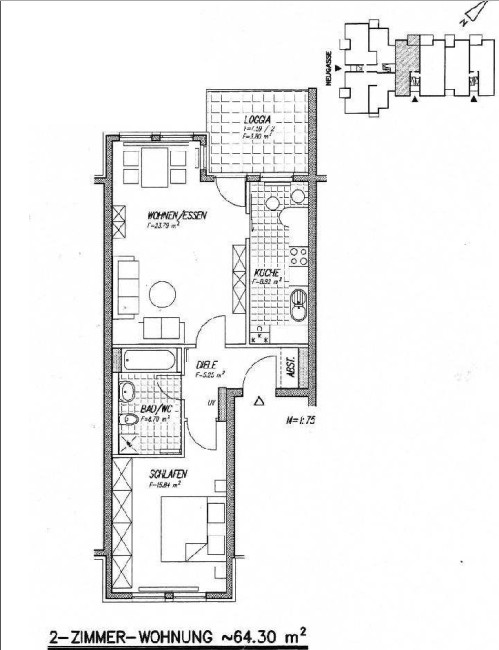 Ruhige 2-ZKB teilmöbliert, zentral aber sehr ruhig mit TG-Platz, Keller