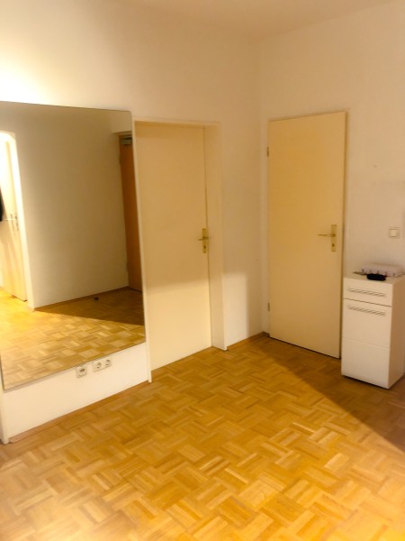 Die Wohnung liegt im 3. Stock mit Aufzug. Insgesamt hat sie ca. 90 m² bestehend aus 3 Zimmern. Das Wc und das Bad sind in separaten Räumen (Siehe Grundriss). Ich selbst bin Hauptmieter und wohne auch in der Wohnung, alle zwei Wochen habe ich meine Tochter (5 Jahre) bei mir, welche aber die Zeit in meinem Zimmer verbringt (wenn daheim). Das Zimmer ist derzeit nicht möbliert. Wenn man aus dem Fenster schaut sieht man die Isar. Die Lage ist sehr cool, da sie mitten in der Stadt ist und auch extrem gut zum laufen an der Isar einlädt. Im Sommer kann man fußläufig zum Praterstrand gehen und baden. Im Grundriss ist es das Zimmer Nummer 2.
