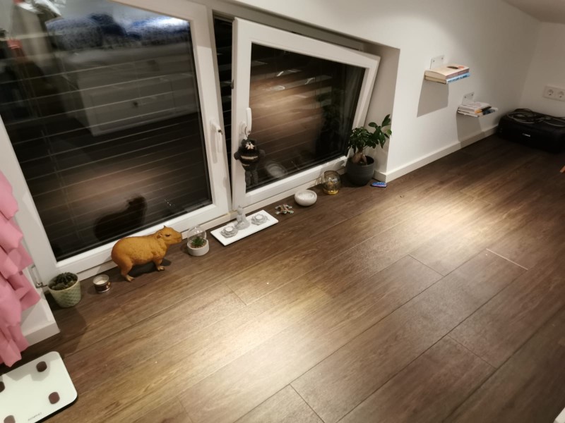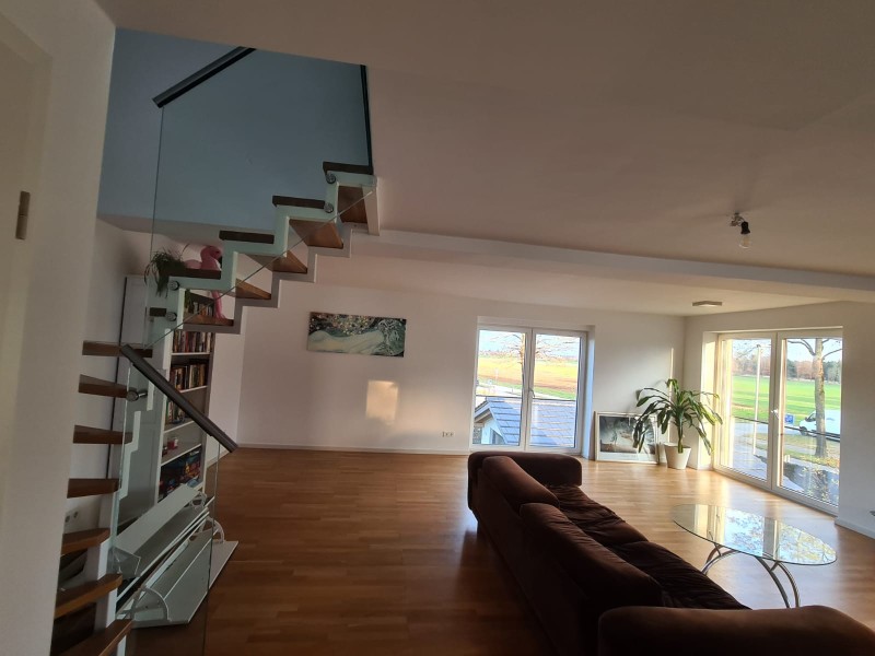 Die Wohnung ist sehr schön und modern, wie man den Bildern entnehmen kann und umfasst insgesamt 130, 72 Quadratmeter. Die großen Fenster im Wohnzimmer bieten nicht nur sehr viel Tageslicht, sondern auch einen malerischen Ausblick auf das naheliegende Feld und den Wald. Dazu kommt die riesige Dachterrasse, die ein zusätzliches Gefühl von Freiheit vermittelt. Zudem gibt es 2 Badezimmer und eine Abstellkammer. Das Zimmer, das dein neues Zuhause sein wird, ist 17,42 Quadratmeter groß und hat ein Seiten- sowie Dachfenster. Beide Fenster sind mit Außenrollos ausgestattet, die man mit einer Fernbedienung unterschiedlich einstellen kann.