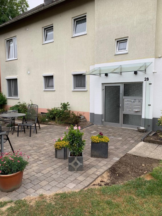 Im Treppenhaus des Haupteingang sind 2 Stufen für den Zugang zur Wohnung zu überwinden. Stufenloser Zugang zur Wohnung ist über die eigene Terrasse möglich