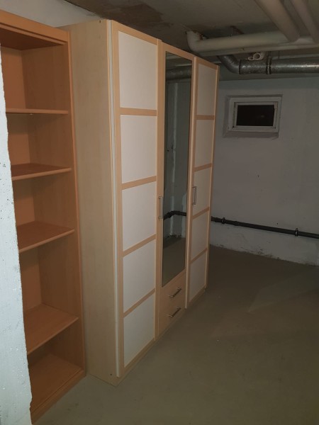Kleiderschrank und ein Regal, welche ebenfalls den Mieter