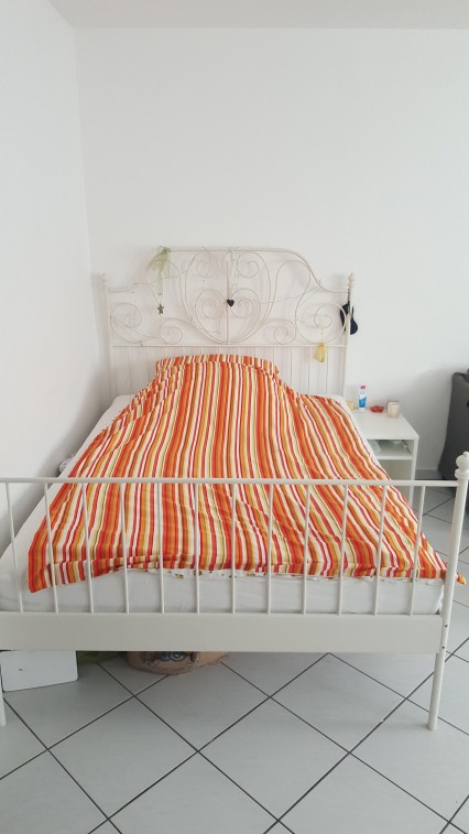 Das große Wohzimmer bietet Platz um Wohn- und Schlafbereich zu kombinieren (siehe Fotos). Das Bad besteht aus Dusche, WC und Waschbecken. Spiegel und Ablageplatte sind eingebaut. Die komplette Wohnung verfügt über Rolläden.