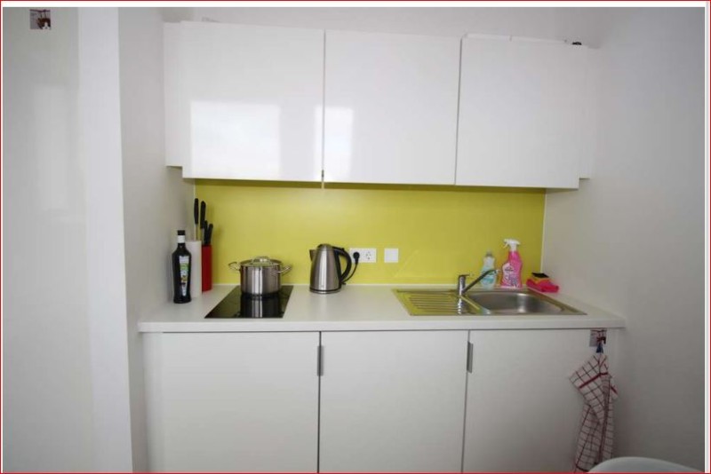 - hell gefliestes Badezimmer mit gehobener Sanitärausstattung - moderne Küchenzeile mit 2 Herdplatten und Mikrowelle - komplette Möblierung, wie Bett, Schrank, Schreibtisch, Esstisch und Stühle u.a.
