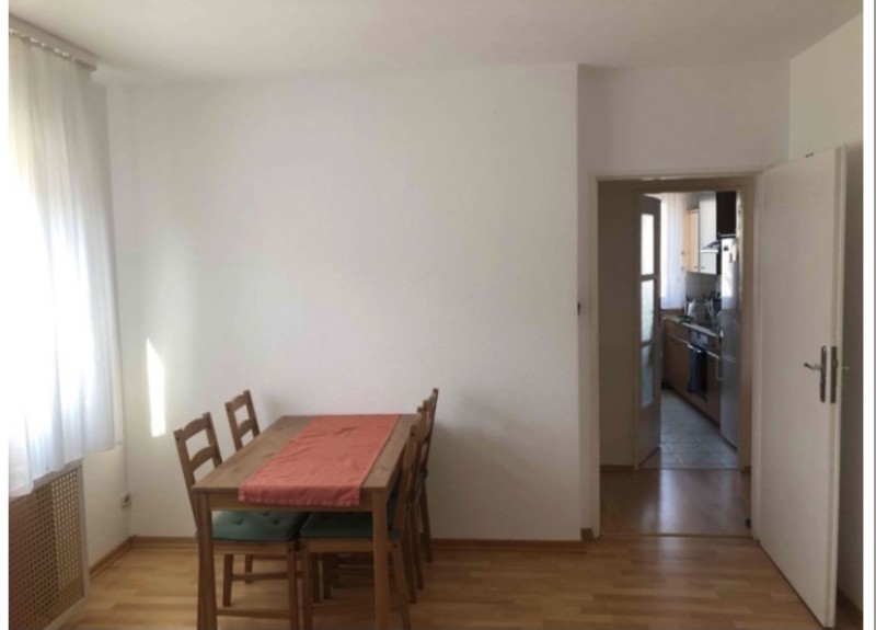 Die Wohnung befindet sich im 1. Stock eines gepflegten Mehrfamilienhauses. Sie besteht aus einem großzügig geschnittenen, voll möblierten Wohn- und Esszimmer mit Balkon, aus zwei Schlafzimmern (ein Zimmer ist dann zu vergeben), einer voll ausgestatteten Küche und einem Badezimmer mit Badewanne. Im Flur befindet sich ein praktischer Wandschrank. Alle Möbel gehören zu der Wohnung, es muss also KEIN Abschlag dafür gezahlt werden.