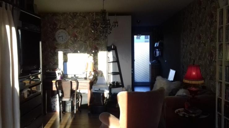 Die Wohnung an sich ist sehr offen geschnitten und verfügt neben dem freien Zimmer über einen offenen Wohn- und Schlafbereich mit (ebenfalls) offener Küche.