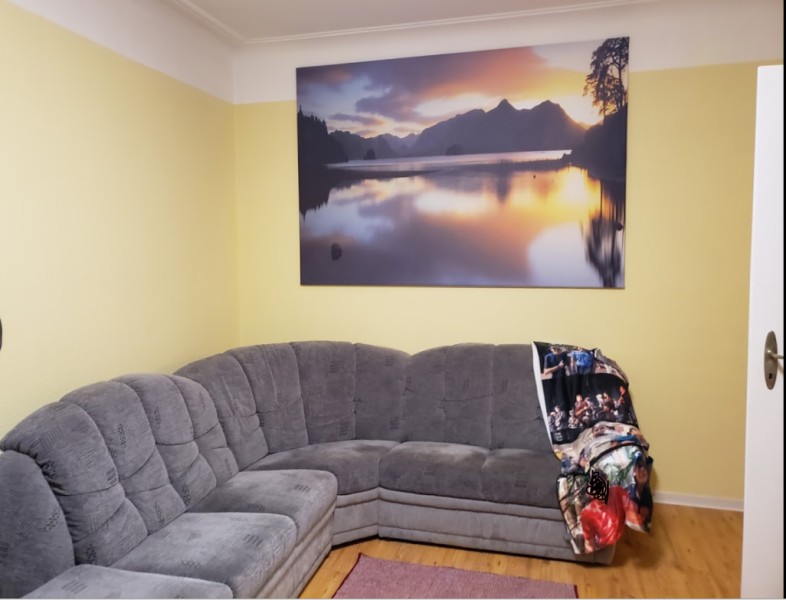 Das zu vermietende Zimmer (unmöbliert) ist 20 qm groß, sehr hell durch zwei große Fenster und hat einen TV- Anschluss. Die Waende sind sehr hoch und der Boden ist super schoen. Das Zimmer ist sehr gross, ich hatte ein Doppelbett, grossen Schreibtisch, und riesige Wohnlandschaft im Zimmer, fast wie ein 1-Zimmer Wohnung.