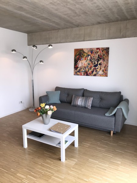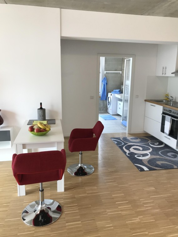 Helles 2-Zimmer-Appartement Neubau (Ausrichtung Südwest) hochwertig möbliert mit Parkettboden. Die hohen Wände, verleihen den Räumen eine besondere Großzügigkeit.
