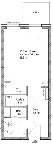 Zur Vermietung wird eine luxuriöse 1-Zi. Wohnung mit gemütlichem Wohnzimmer und einem eleganten Balkon, sehr geräumiger Diele, super ausgestatteter Dusche-WC, einem Abstellraum mit Anschluss für Waschmaschine, inkl. L-Förmige Einbauküche angeboten.