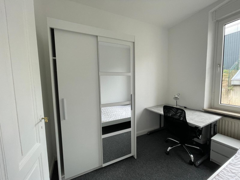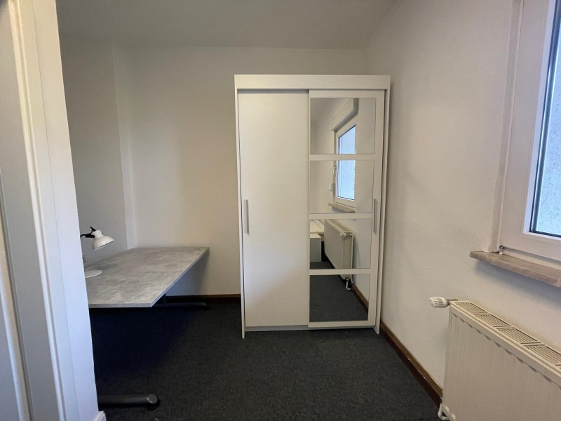 Das Zimmer ist voll möbiliert ( Bett, Schrank, Schreibtisch,..)